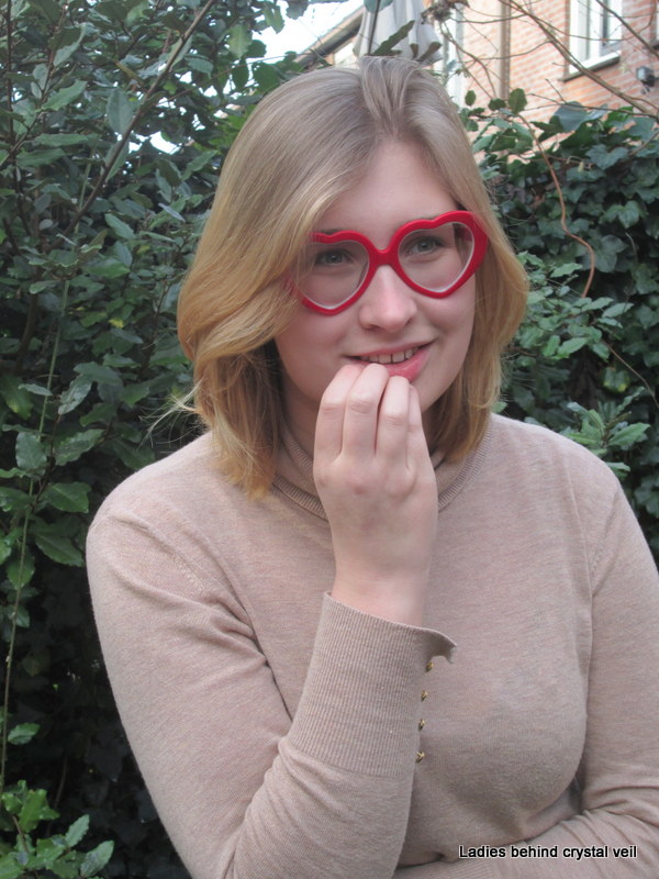 Many followers of my weblogs may remember that I did several duo shoots over the years. All of these were prearranged. Mother and daughter shoots, a twin sister shoot.... But this occasion was different. I came across two girls in my local shopping mall and noticed that one of them was a glasses wearer with an excellent taste for frames. So I asked her if she would be interested in posing for me. She kindly accepted the invitation. During the preparatory correspondence she asked me if it was alright that her friend Iris would attend the shoot. Of course. When the girls arrived at my place I first showed them a part of my collection and soon it dawned to me that Iris was quite interested and knowledgeable about glasses. So I asked Iris if she was interested to pose in a couple of series. To my delight, she agreed straightaway. Iris is only an occasional glasses wearer with a mild prescription. A quick dive into my collection and off we went.... The glasses shown here by Iris were made in Scandinavia almost thirty years ago. They were the favorite of Mirjam during her first photo shoot and I gave them to her on an extended loan for night driving until she eventually got her first pair of prescription glasses. Stories.... These Pro Design glasses are of the "you can't go wrong" category and they gave Iris perfect eyesight.